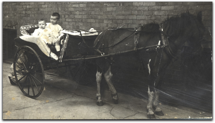(Note Chane in the background. The story is that she held onto the cart to make sure the horse did not run away with her precious children.)