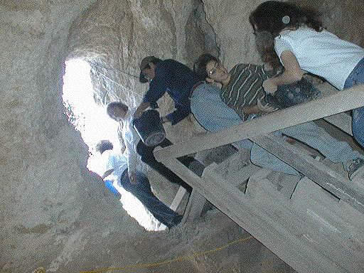 After we dig up a layer of earth in the cave we have to remove it and then sift it.