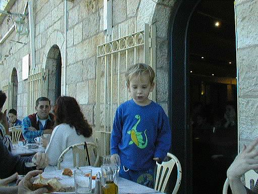 When Debbie and I were in Israel in November/December of 1995 we had lunch with Jay, Tzippi, Eitan and Nadav at the Cinemateque restaurant overlooking the Old City. We ate there again this time. These pictures are on the patio in front of the restaurant.