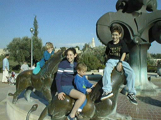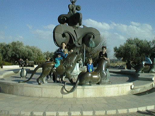 Eitan remembered playing on the "lion fountain" after lunch. We went there again and had a good time siting in the sun talking while the kids played.
