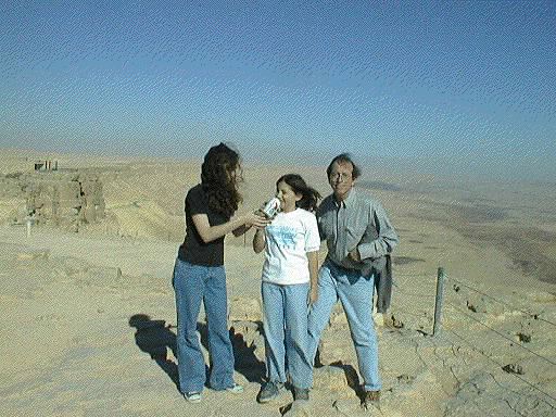 Avigail, Rebecca and Marshall at the edge of the crater.